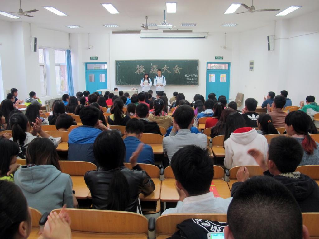 10月14日下午,信息学院学生会及党小组换届大会在崇文西楼101教室举行。学工办主任曹伟,全体辅导员、学生干部近200人参加了大会。