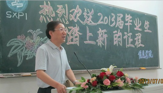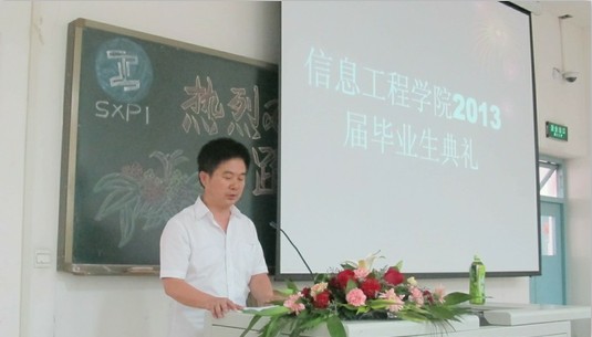 在校生代表万朋对即将远行的2013届毕业生表达了诚挚感谢和美好祝愿,承诺一定会把信息学子勤奋好学、互助互爱的精神链条编织下去;毕业生代表杨佳说:三年大学生活,我们学会了分析与思考、合作与竞争,学会了继承与创新,更学会了突破自己的极限而成长,毕业将即将终生铭记知识在陕西工院充实,信念在陕西工院升华,理想在陕西工院放飞。
