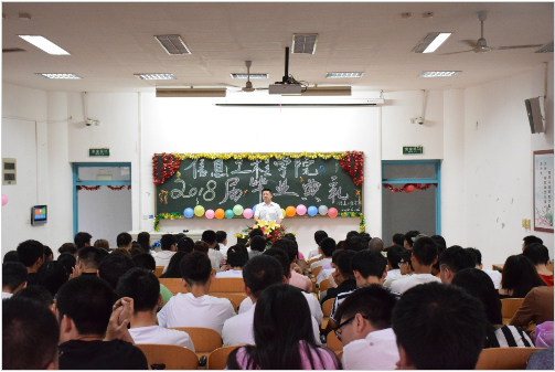 6月26日上午9时,乐鱼网页版登录入口2018届毕业典礼在崇文西楼202举行。乐鱼网页版登录入口院长何玉辉、总支书记闫军、副院长殷锋社、教学办主任宋承继、工程训练中心主任吕阿璐、学工办主任何瑾及全体辅导员、班主任、毕业生代表、在校生代表200余人参加了毕业典礼。典礼由总支书记闫军主持。