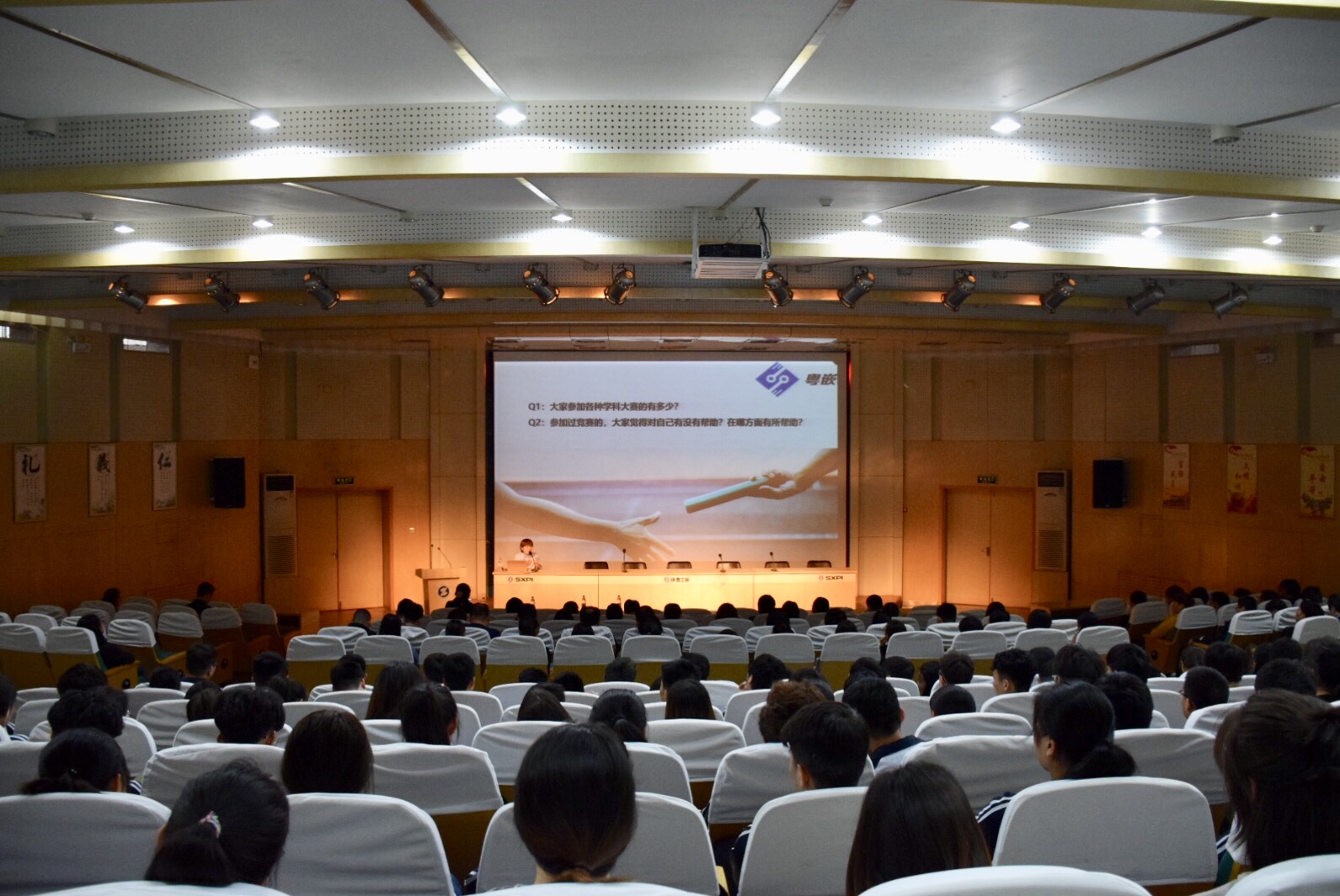 讲座中,赵宁老师为同学们解析了什么是“互联网+”及大学生参加学科竞赛的意义和好处,分析了历届获奖项目和案例,并介绍了如何入手“互联网+”项目、撰写商业策划书的注意事项等。