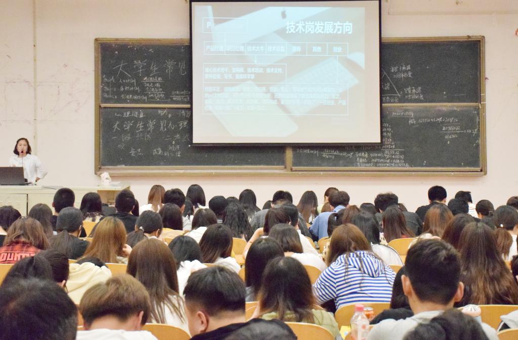 冯俊经理长期从事于学生职业生涯规划、就业指导方面工作,具有丰富工作经验。她运用大量成功获取高薪的就业案例,通过抓取网上各大招聘网站信息,以详实的数据、丰富的图片视频资源为同学们解析了职业定位、岗位定位、薪资定位的情况,同时强调沟通能力和团队能力在现在就业中的重要性。现场通过与师生的交流互动,她重点分析了就业过程中简历的重要性和投递要点,为同学们就业第一步打好基础。在人才培养方面,她肯定了我院学生技能水平和国家技能大赛中优秀表现,希望同学们多去企业实践和锻炼,将学校学习与企业需求结合起来,更好的适应企业的需求。