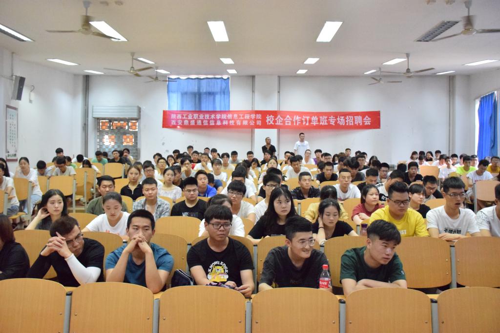 为了切实做好信息学院2020届1056名毕业生就业工作,搭建学院与用人单位就业工作平台,推进校企合作订单班开展,乐鱼网页版登录入口于6月26日下午在崇文西楼101教室举办首场校企合作订单班招聘会,西安鼎盛通信信息科技有限公司项目经理做现场宣讲。