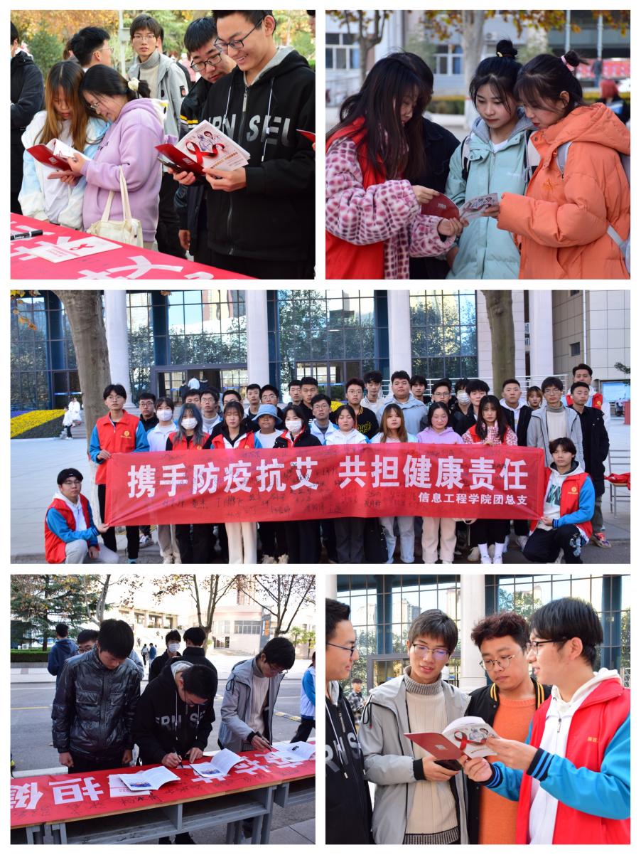 “行”动广宣传,竞当防艾行动者。为将防艾宣传知识教育行动化、实践化,学院开展了“防艾不防爱,以爱抗艾”校园宣传教育活动。通过发起百人签名活动、悬挂主题标语,发放宣传彩页等方式,向广大师生普及艾滋病的传播途径以及防控知识,呼吁同学们提高自我防范意识、保持健康生活方式,以实际行动共遏艾滋、共享健康。