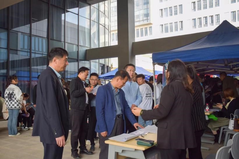 现场人声鼎沸、气氛热烈,求职毕业生们穿梭于各个展位间积极寻找与自身条件契合的职位,学校领导和辅导员老师们也全程参与其中,帮助毕业生就岗位职责、发展空间、薪资福利等问题与招聘单位沟通交流,用人单位对我校毕业生展现出的求职态度、综合素质给予了充分肯定。