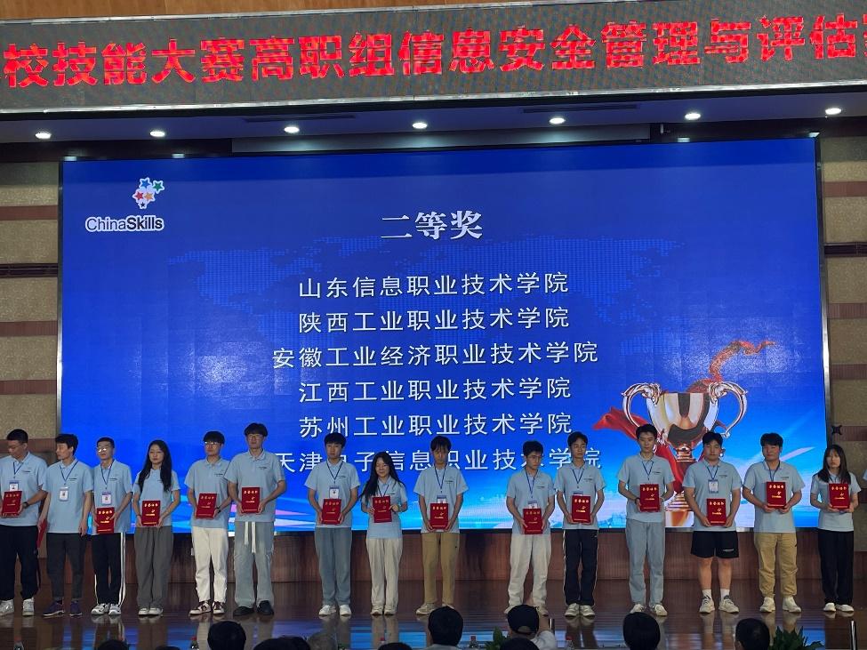 2023年8月20日至21日,2023年全国职业院校技能大赛(高职组)“信息安全管理与评估”赛项在重庆工业职业技术学院举行,来自全国29个省、直辖市、自治区的62个代表队齐聚山城重庆,一展所学,赛出精彩。由我校乐鱼网页版登录入口杨鹏和杨丹老师指导的网络2003班豆凯歌、网络2101班董丹丹及网络2101班刘德辉组成的代表队顽强拼搏、团结奋战,最终荣获团体二等奖。