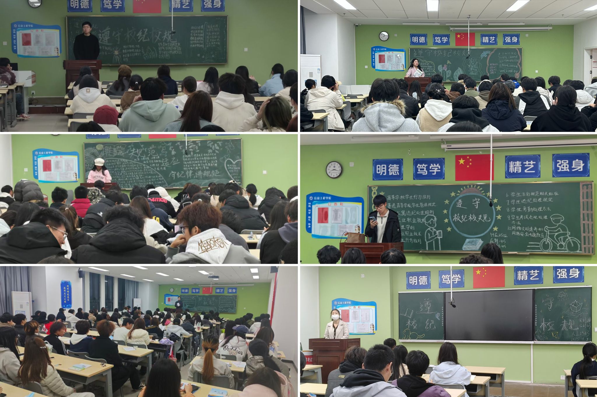 各班班主任带领学生认真学习了《普通高等学校学生管理规定》相关条款内容,并结合大学生活实际,详细解读《陕西工业职业技术大学学生手册》《学生违纪处理规定》等学校制度。班会过程中,班主任们运用案例教学法,对《学生公寓违纪处理细则》《学生考勤管理办法》《学生考试违规处理办法》等与日常学习生活息息相关的条款进行了深入讲解,通过真实案例警示,明确了大学生行为“红线”与“底线”。同学们分享自己对校规校纪的理解。大家表示,要自觉以各项准则和规定为行动指南,把外在的纪律要求转化为内在的自觉行动。