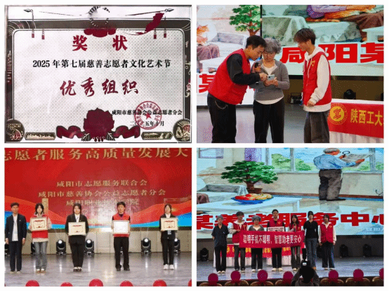 10月18日,咸阳市第七届慈善志愿者文化艺术节顺利召开。本次活动由咸阳市慈善协会公益志愿者分会主办,集中展现慈善志愿事业成果。信息学院馨暖爱心志愿者服务队受邀参会,凭借扎实的服务积淀与创新实践,荣膺第七届慈善志愿者文化节“优秀组织”荣誉称号,团队4名成员同步获评“优秀志愿者”、“宣传先进工作者”,成为现场公益阵线的一抹亮色