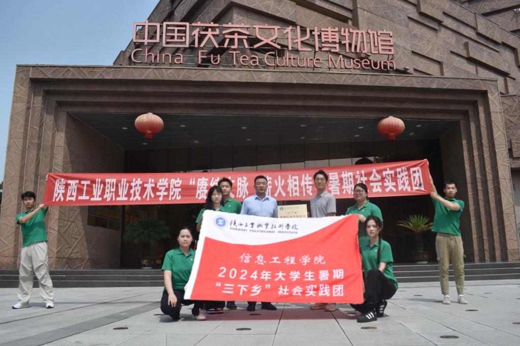 最后,实践团与中国茯茶文化博物馆共同建立了“陕西工业职业技术学院大学生暑期三下乡社会实践基地”,并举行了挂牌仪式。此次实践活动,不仅让实践团成员们对茯茶有了更加全面深入的了解,更激发了他们对传统文化的热爱与传承之心。实践团成员将以此次参观学习为契机,深掘茯茶非遗魅力,保护传承非遗文化,让茯茶文化在新时代的浪潮中焕发新的生机与活力。