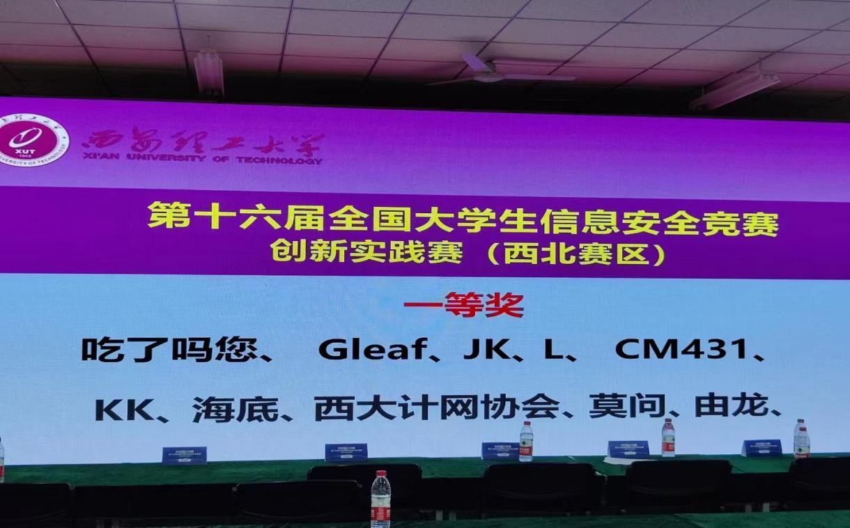 6月23日,2023年第十六届全国大学生信息安全竞赛创新实践能力赛西北赛区分区赛在西安理工大学举行,来自西安电子科技大学、西安邮电大学、西北工业大学、西安理工大学等30所高校,53支战队一较高下,由我院乐鱼网页版登录入口杨鹏老师指导-安全与测试工作室的成员:网络2003班豆凯歌、网络2102班刘德辉、网络5191班魏子恒、网络2102班董丹丹组成的海底战队,经过5月27日-5月28日线上初赛和和6月23日线下区域决赛,激烈角逐,斩获分区赛一等奖,成功晋级决赛。