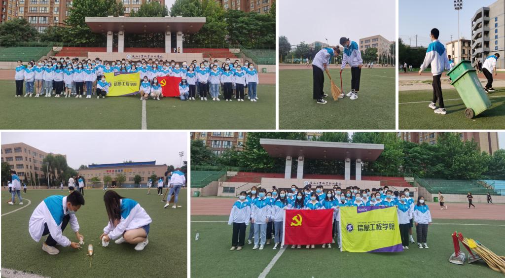端午节三天假期的每天清晨6点半,在信息学院学生第一党支部各党小组党员的组织带领下,学生党员、发展对象、积极分子带着扫把、簸箕、皮胶手套、垃圾钳等扫除工具对整个操场的环境卫生进行全面、大规模的清洁和美化。在劳动过程中,同学们不怕脏,不喊累,分工合作,互相配合,有秩序地清理操场草坪、捡拾垃圾,用自己的热情和行动为校园增添一份清新、一抹明亮。