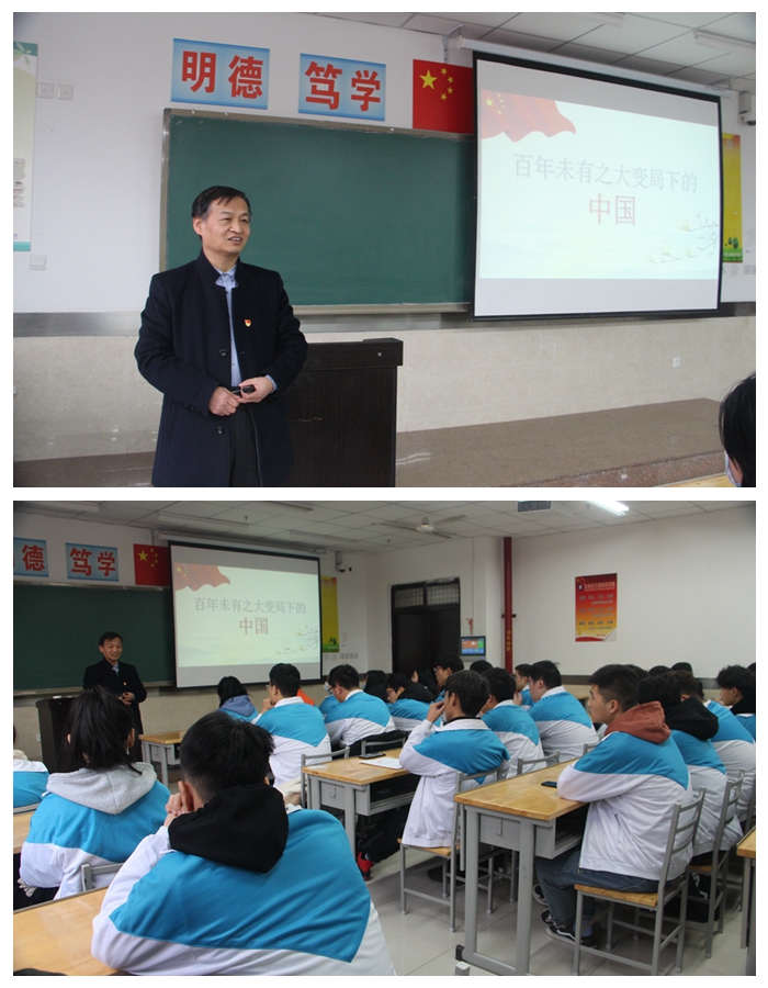 党委副书记贺天柱围绕“百年未有之大变局下的中国”的主题,从“百年未有之大变局、大变局中的机遇与挑战、大变局中的中国角色”三个方面讲授党课。 首先,他通过分析国际力量对比之变、世界格局之变、科技革命之变、现代化发展模式之变阐述了以中国为代表的新兴市场国家和发展中国家群体性崛起,在世界上发挥重要作用和产生重大影响的力量构成了不同形态的世界格局;大量新产业、新业态、新模式正在改写人类发展历史,重塑全球经济结构,给人类的生产和生活方式带来翻天覆地的变化;科技发展带来新的未知和挑战,影响每个国家的前途命运,国际秩序和格局的演变进程;社会主义中国在探索现代化道路上取得了举世公认的成就。其次,他引领同学正确认识大变局孕育着中国引领时代、塑造时代的机遇和挑战;第三,他着重解读中国发展振兴是百年大变局的重大变化之一、是和平与稳定的力量、是大变局中的正能量;中国积极为维护世界和平稳定贡献中国智慧和中国方案,积极维护以联合国为核心的国际秩序,积极探索和践行中国特色热点问题解决之道;中国始终坚持走和平发展道路,永不称霸、永不扩张、永不谋求势力范围,中国是发展与繁荣的力量。