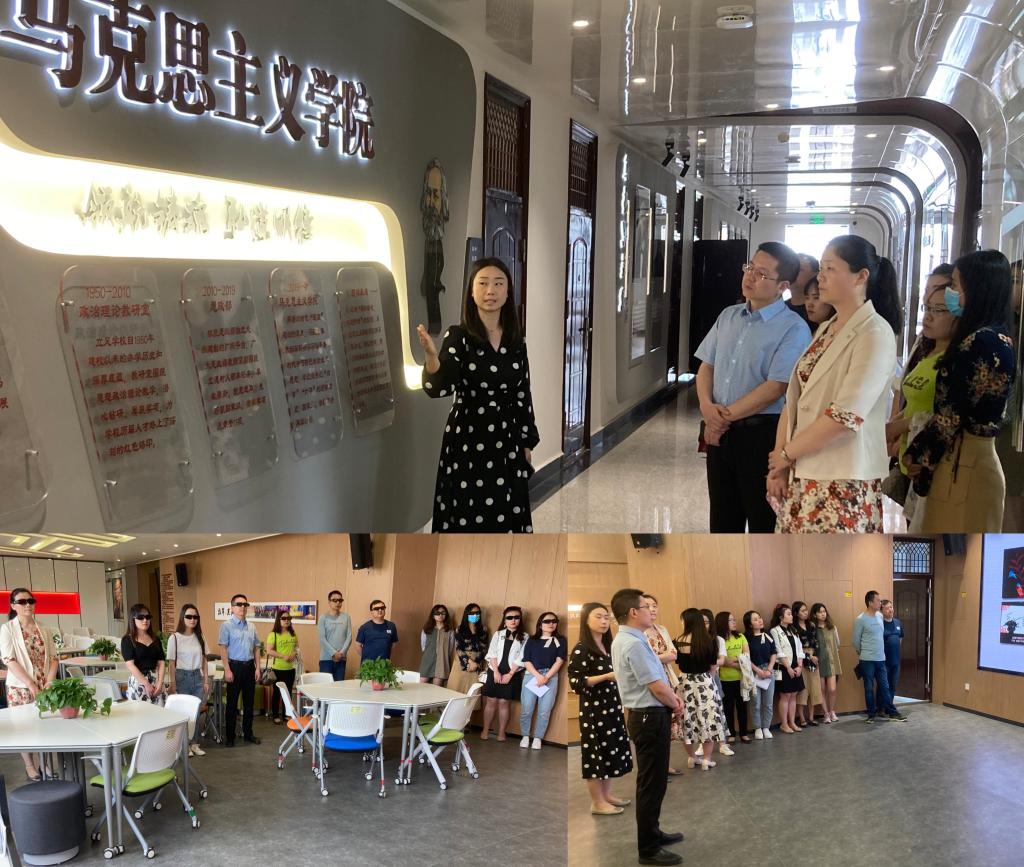 5月13日下午,信息学院党总支教师第二党支部在马克思学院开展了“学党史、促行动、创新篇”主题党日活动。在解说员的引领下,全体党员对“学马研习·践创空间”的AR思政长廊、VR智慧思政实训中心、马院智创思政工坊等进行了体验式的参观学习。在AR思政长廊学习党史理论;在VR智慧思政实训中心身临其境地体验红军长征情境;在沉浸式教学空间戴上3D眼镜观看“八一南昌起义”纪念馆。