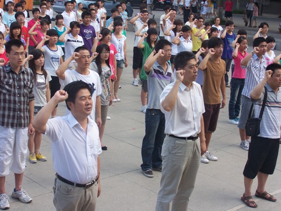 2010年6月30日下午六点半,乐鱼网页版登录入口学生党员重温入党誓词及佩带党徽仪式在崇文南楼前小足球场举行。乐鱼网页版登录入口党总支书记何玉辉、学院组织部副部长王金辉、学工办主任曹伟、乐鱼网页版登录入口党总支组织委员李俊,学工办辅导员俞存高、张建平、桓美丽、李冉以及08级74名预备党员和09级入党积极分子约200人参加了活动。本次活动由学工办辅导员桓美丽老师主持。